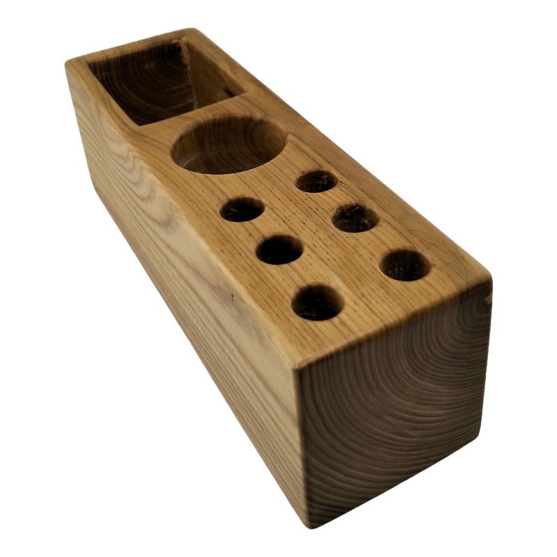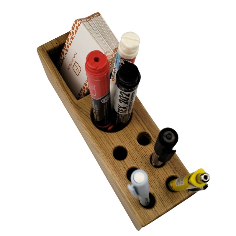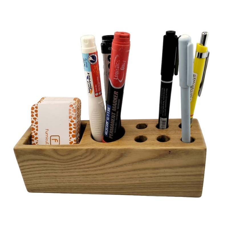This Wooden Card and Penholder is a triple-function desk essential crafted for organization and elegance. With three distinct compartments, this holder seamlessly merges practicality with style.Featuring a dedicated section for storing cards, alongside a space for markers or similar tools, and complemented by six round holes for pens or pencils, it ensures every desk item has its designated place.Effortlessly tidy your workspace while adding a touch of sophistication. Perfect for professionals and creatives alike, this versatile accessory streamlines your workflow and enhances productivity.Experience the convenience and charm of the Wooden Card and Penholder – your desk's perfect companion for efficiency and refinement.