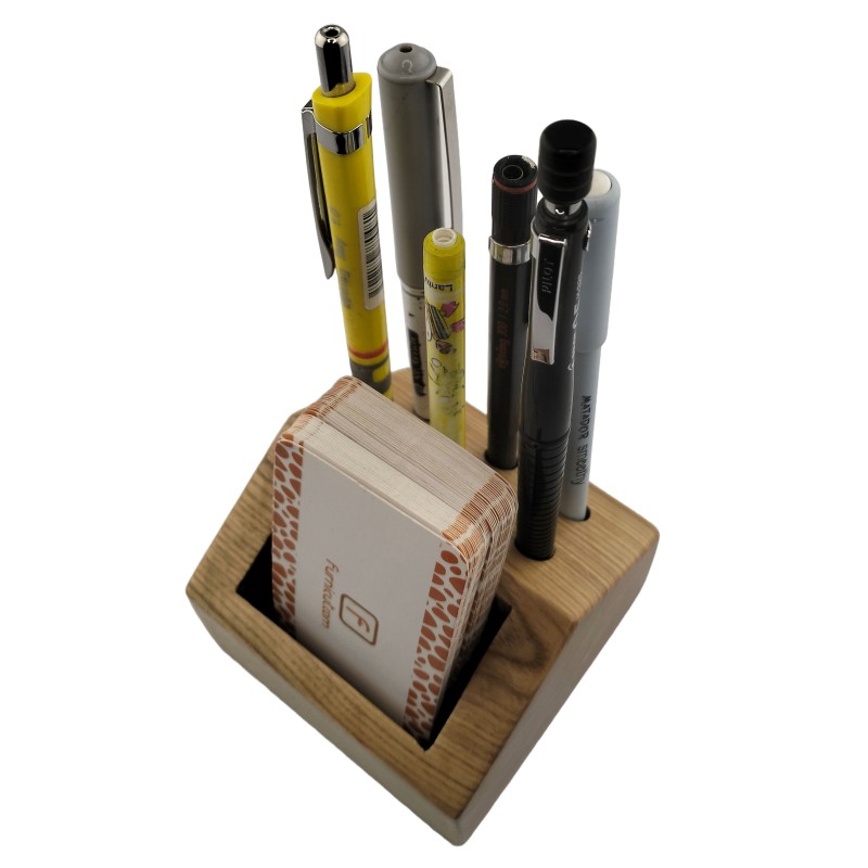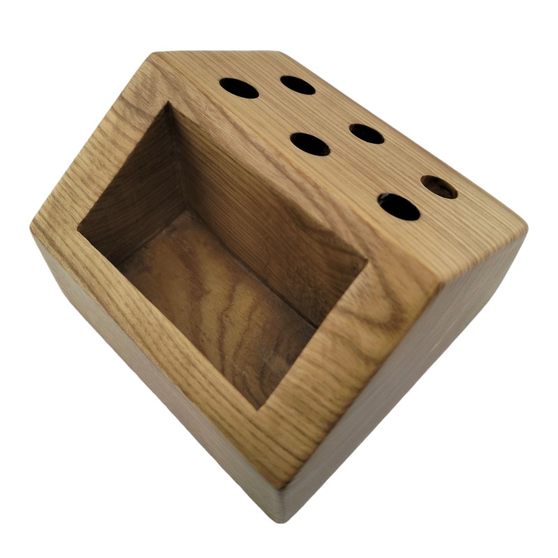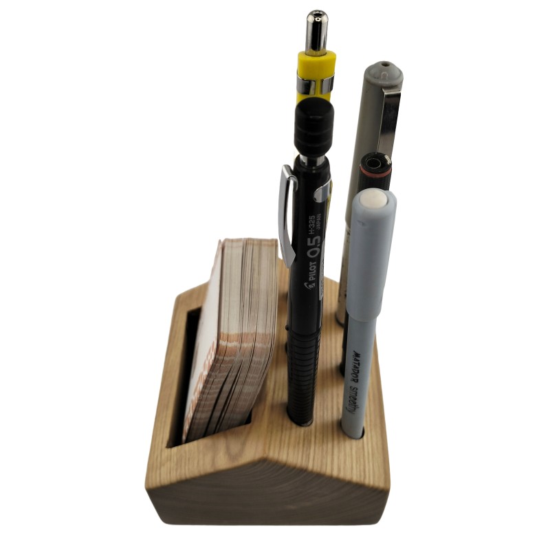 Presenting the Wooden Card and Penholder - a fusion of elegance and functionality, redefining desk organization. With its dual-purpose design, this sleek accessory epitomizes the perfect balance between style and practicality.On one side, a sleek compartment provides ample space to store your business cards, keeping them organized and easily accessible. On the other side, six round holes accommodate pens or pencils, ensuring they're always within reach when inspiration strikes.This versatile product is perfect for professionals seeking a polished desk accessory that enhances productivity and tidiness. Its timeless wooden design adds a touch of sophistication to any workspace, making it an ideal gift for colleagues, friends, or anyone looking to elevate their office aesthetic.As William Morris once said, "Have nothing in your house that you do not know to be useful or believe to be beautiful." This meticulously crafted holder embodies both principles, making it an indispensable addition to any workspace. Elevate your desk with the Wooden Card and Penholder today.