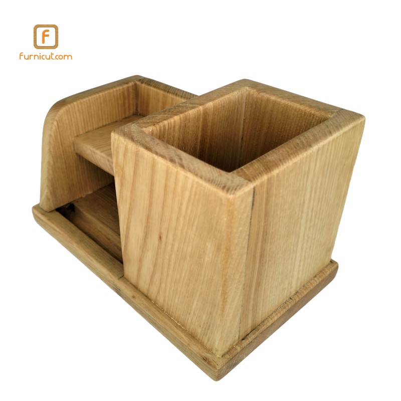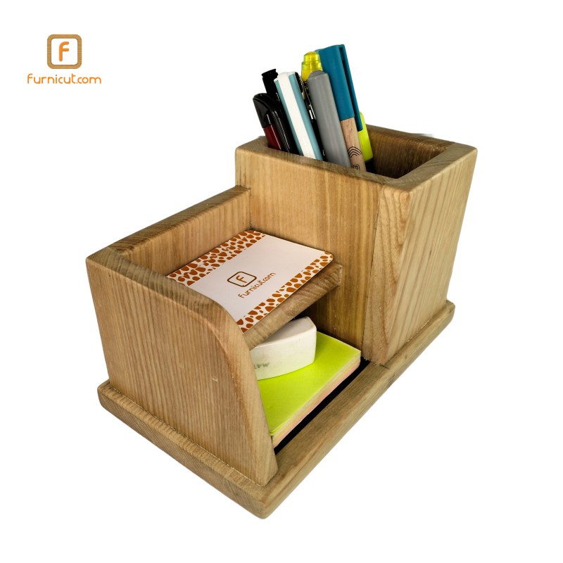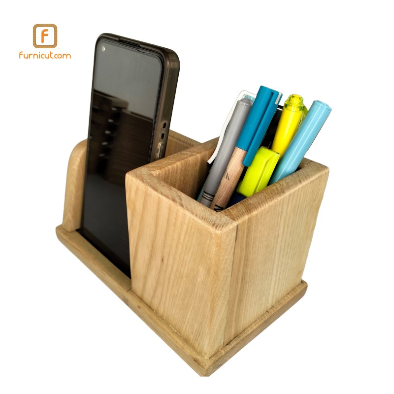 Presenting the Wooden Card and Penholder – where organization meets elegance in four functional compartments. With a designated space for pens, pencils, markers, and similar tools, alongside sections for storing cards, mobile phones, and sticky notes, this holder epitomizes efficiency and style.As Leonardo da Vinci famously said, "Simplicity is the ultimate sophistication." Streamline your workspace with this versatile accessory, ensuring every essential item has its place.Perfect for professionals and creatives seeking to enhance productivity and declutter their desks, the Wooden Card and Penholder offers a seamless solution for a tidy and stylish workspace.