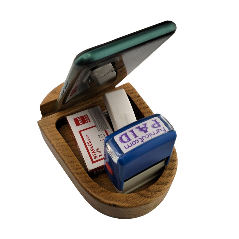 This Oval Wooden Phone and Keyholder is a sleek and versatile solution for organizing your essentials. With two thoughtfully designed compartments, this holder combines functionality with elegant aesthetics.From keeping your mobile phone easily accessible to storing keys, cards, or any other necessary objects, it effortlessly tidies up your space while adding a touch of sophistication.As Marie Kondo once said, "The secret of success is to tidy up in a way that sparks joy." Experience the joy of a clutter-free environment with this stylish and practical accessory. Perfect for homes, offices, or as a thoughtful gift, the Wooden Phone and Keyholder brings harmony and order to any space. Elevate your organization game today.