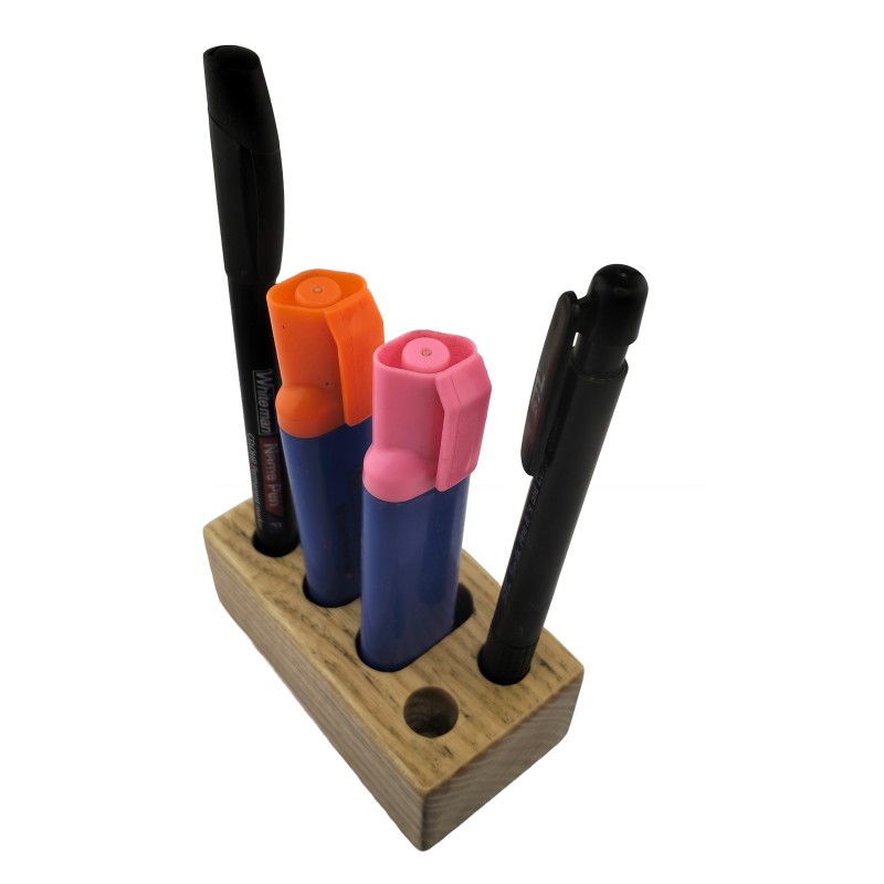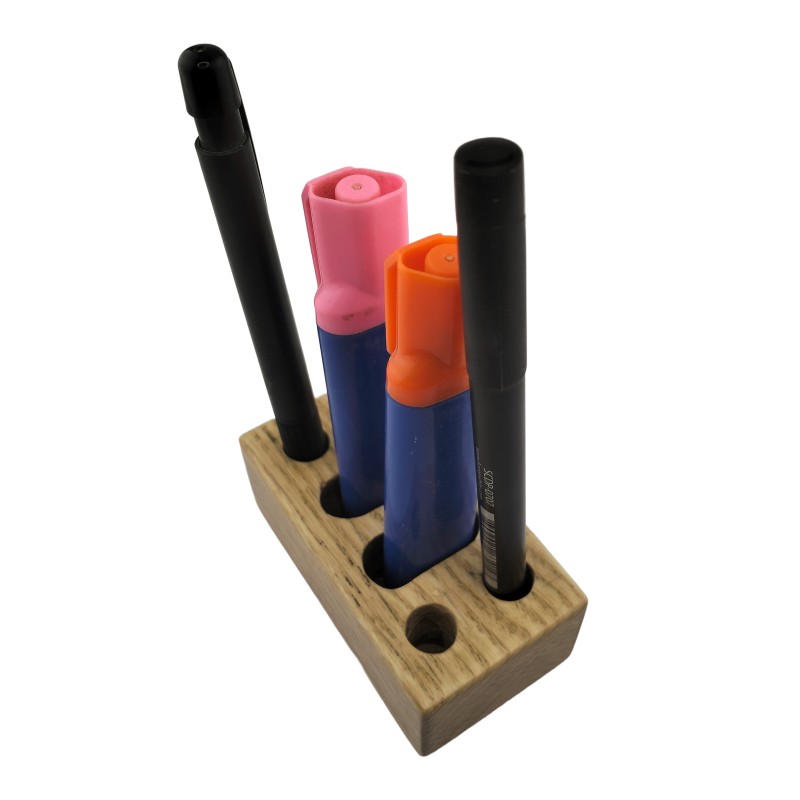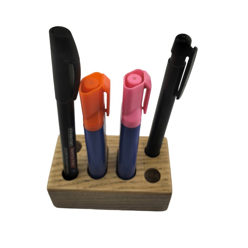 This Wooden Pen Holder is where organization meets elegance in a sleek and functional design. Crafted to perfection, this holder features two spacious holes to house markers or similar objects, alongside four smaller holes for pens or pencils, ensuring every writing instrument has its place.Perfect for decluttering your desk or adding a touch of sophistication to any workspace, this holder is as practical as it is stylish. Its versatile functionality makes it an ideal gift for colleagues, friends, or anyone seeking to elevate their workspace organization with a touch of class. Upgrade your desk setup with the Rectangular Wooden Pen Holder – the perfect blend of form and function.