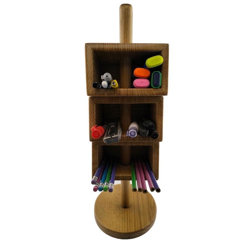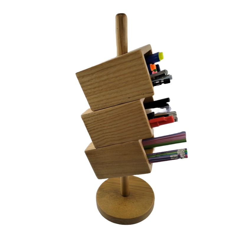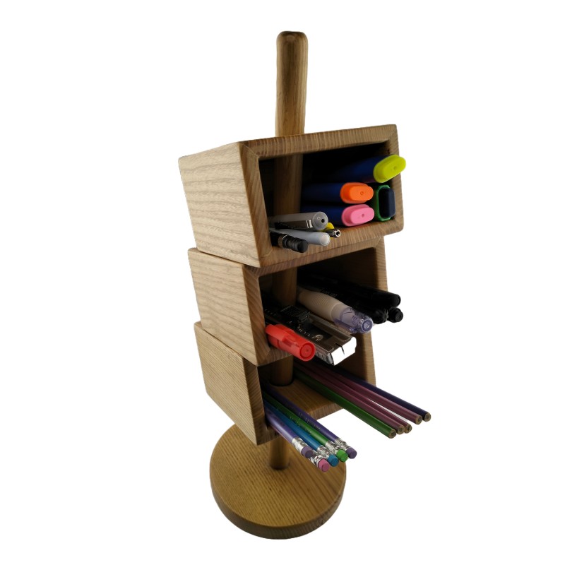This Hanging Wooden Pen Holder is a unique fusion of functionality and artistry that adds a touch of elegance to any space. Suspended from a central pole, three rectangular-shaped holders provide ample storage for pens, pencils, markers, or similar items, while also serving as a striking piece of decor.Not just a practical organizer, but also a statement piece that enhances any room's aesthetic. Perfect for gifting to those who appreciate both form and function, this holder transforms any workspace into a gallery of creativity. Elevate your desk or gift someone special with the Hanging Wooden Pen Holder – where utility meets artistry.