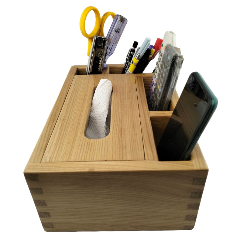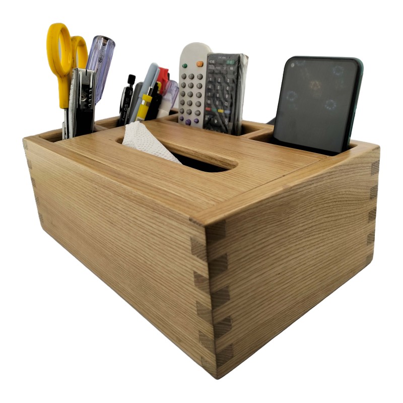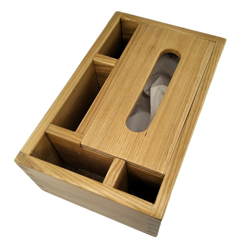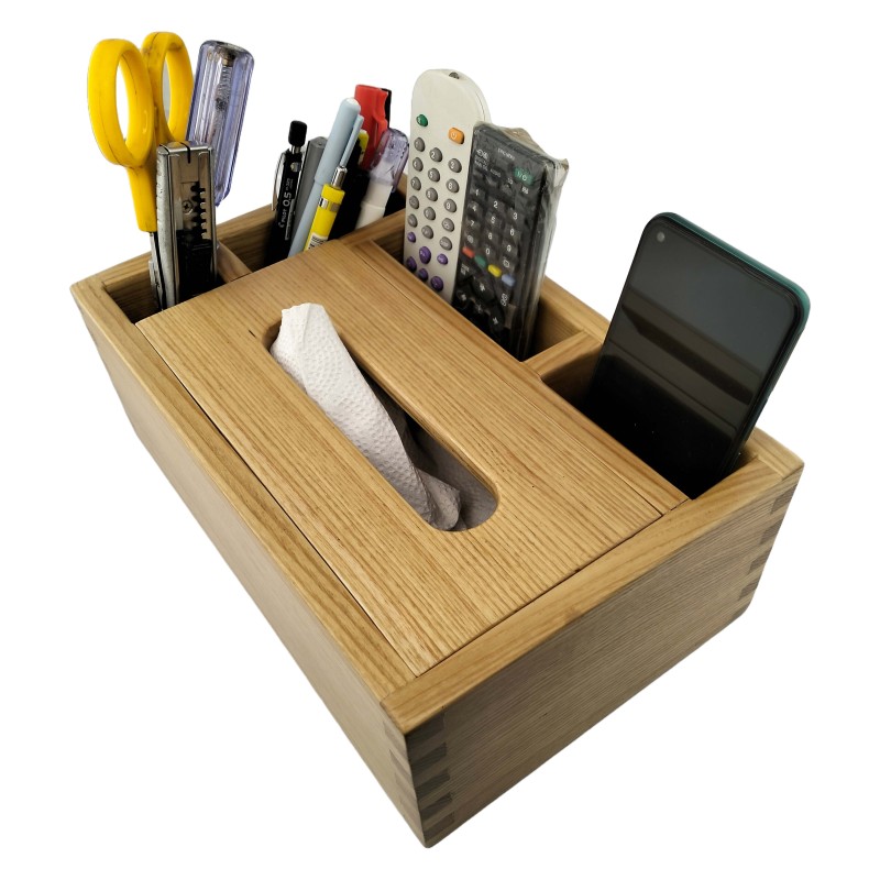 Introducing the Wooden Tissue Box with Integrated Organizer – where form meets function in perfect harmony. This innovative design not only elegantly houses your tissues but also offers four convenient holders for your phone, remotes, markers, pens, and stationery, keeping all your essentials within easy reach.Unleash the power of organization with this stylish and practical solution – because why settle for clutter when you can have order and sophistication?More than just a household item, it's a game-changer for streamlining your space. Ideal for gifting, it combines utility with elegance, making it a thoughtful and versatile present for anyone seeking both practicality and style.
