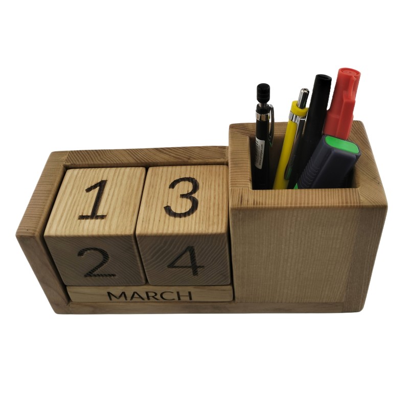 Introducing the Wooden Penholder with an innovative calendar function – a fusion of practicality and sophistication, redefining desk organization. This finely crafted penholder not only stores your writing tools stylishly but also integrates a customizable calendar system, enhancing both functionality and aesthetics.