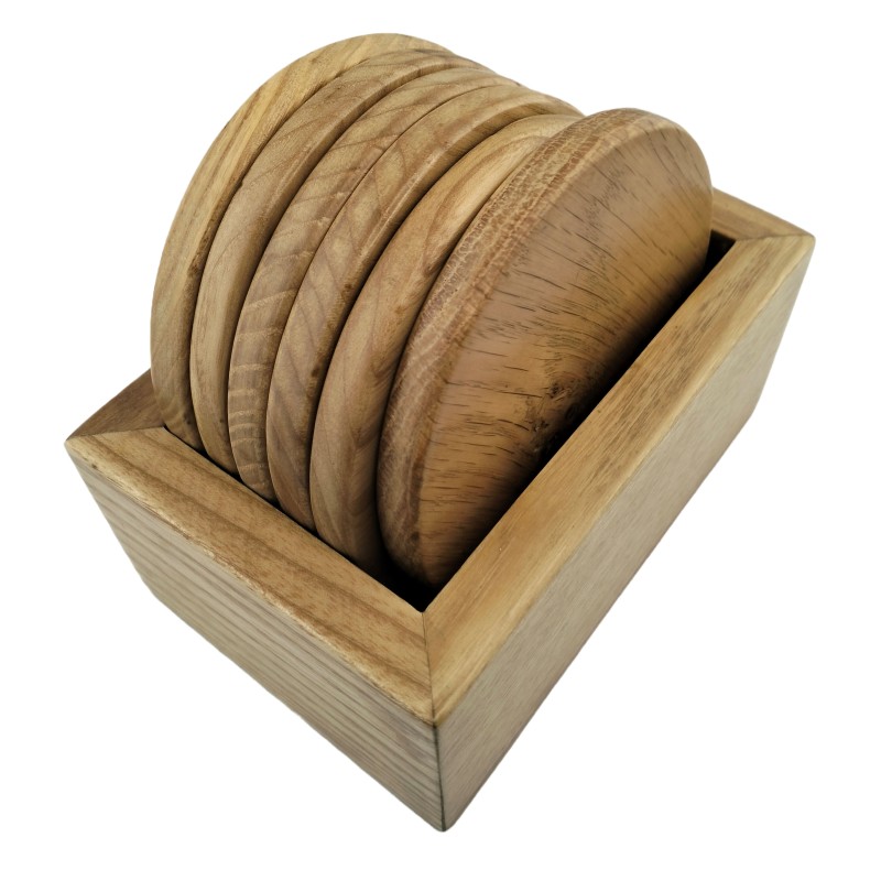 Introducing the Wooden Glass Mat Set – where practicality meets elegance in a sophisticated display of craftsmanship. Nestled within a sleek rectangular wooden holder, six round glass mats provide the perfect blend of functionality and style. Crafted from high-quality wood, these mats are not only durable but also easy to clean, ensuring hassle-free use for years to come.As Leonardo da Vinci once said, "Simplicity is the ultimate sophistication." Elevate your dining or workspace with this chic set – where simplicity meets sophistication.More than just a practical addition, it's a statement piece that adds a touch of refinement to any setting. Perfect for gifting to homeowners or office professionals, it's a thoughtful present that combines utility with elegance, enhancing any space with its timeless appeal. Ideal for adding a touch of sophistication to any household or office environment, this wooden glass mat set is a versatile and stylish gift option.