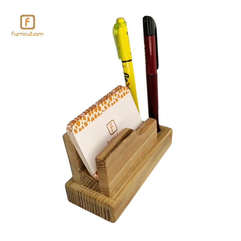 Presenting the Wooden Card and Penholder - a fusion of elegance and functionality, redefining desk organization. With its dual-purpose design, this sleek accessory epitomizes the perfect balance between style and practicality.On one side, a sleek compartment provides ample space to store your business cards, keeping them organized and easily accessible. On the other side, six round holes accommodate pens or pencils, ensuring they're always within reach when inspiration strikes.This versatile product is perfect for professionals seeking a polished desk accessory that enhances productivity and tidiness. Its timeless wooden design adds a touch of sophistication to any workspace, making it an ideal gift for colleagues, friends, or anyone looking to elevate their office aesthetic.As William Morris once said, "Have nothing in your house that you do not know to be useful or believe to be beautiful." This meticulously crafted holder embodies both principles, making it an indispensable addition to any workspace. Elevate your desk with the Wooden Card and Penholder today.
